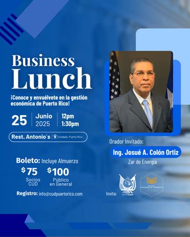 "Este almuerzo empresarial representa una oportunidad clave para fortalecer la voz de los empresarios y promover estrategias que impulsen el crecimiento económico de nuestra Isla. La participación del Comisionado Residente es crucial en este momento de transición, donde las decisiones en Washington tienen un impacto directo en el desarrollo de nuestras PYMES", expresó el Dr. Ramón Barquín III, presidente del CUD.